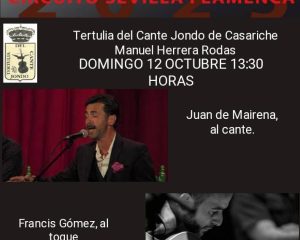 Leer másEste domingo 12 de octubre, a las 13:30 horas, la Tertulia del Cante Jondo de Casariche «Manuel Herrera Rodas» acogerá un recital de cante flamenco
