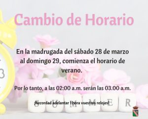 Os recordamos que este fin de semana tiene lugar el cambio al horario de verano, en concreto, se producirá en la madrugada del sábado 28 de