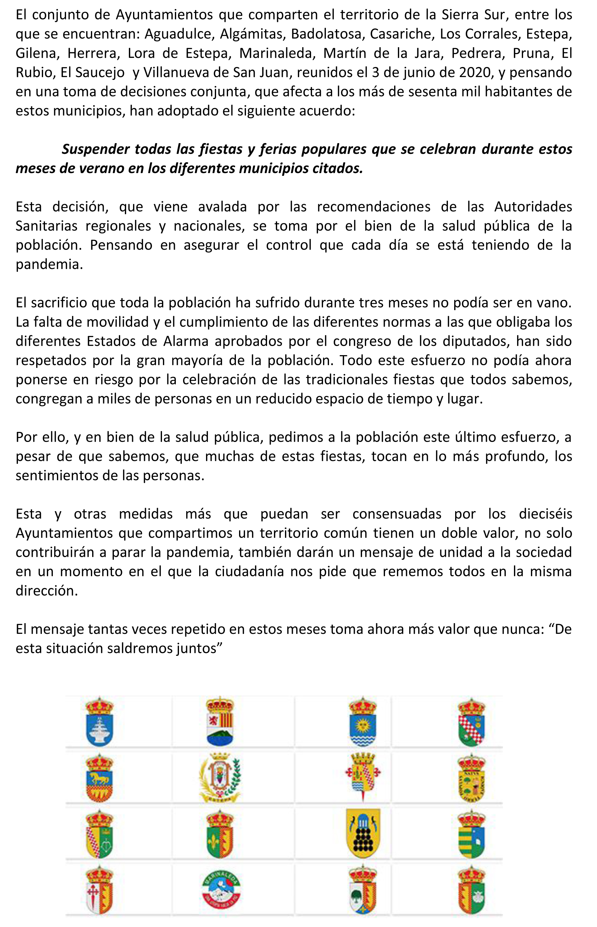 Entrada anterior:Suspensión de la Feria de Santiago de Casariche y de todas las Fiestas y Ferias populares de la Sierra Sur de Sevilla