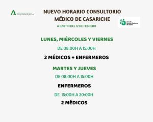 Desde el Servicio Andaluz de Salud (SAS) nos han comunicado en la mañana de hoy que, a partir lunes 12 de febrero, va a haber