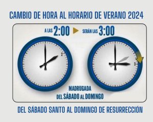Os recordamos que este fin de semana tiene lugar el cambio al horario de verano, en concreto, se producirá en la madrugada del Sábado Santo 30 de