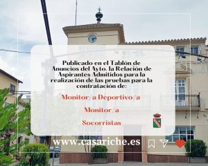 Desde la Delegación de Empleo informamos a todos los vecinos y vecinas de Casariche que ya está disponible la Relación de Aspirantes Admitidos para la realización de las