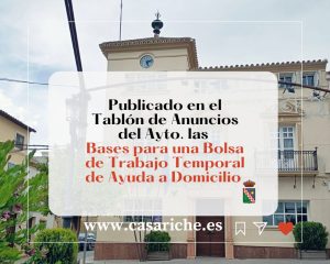 Desde el Área de Empleo, informamos que ya se pueden consultar en el Tablón de Anuncios del Ayuntamiento las Bases que rigen la convocatoria de