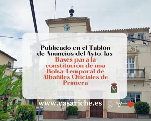 Desde el Área de Empleo, informamos que ya se pueden consultar en el Tablón de Anuncios del Ayuntamiento las Bases para la la constitución de una