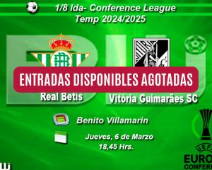 Informamos que se han agotado las entradas para el partido del Real Betis contra el Vitoria Guimaraes de Portugal. En este sentido, destacamos que además