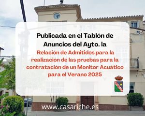 El Ayuntamiento de Casariche informa que a partir de mañana, 1 de julio, y hasta el 10 de julio, permanecerá abierto el plazo para solicitar