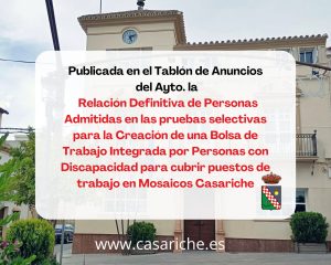 Desde la Delegación de Empleo informamos que se ha publicado tanto en el Tablón de Anuncios del Ayuntamiento como en el E-Tablón la Relación Definitiva de