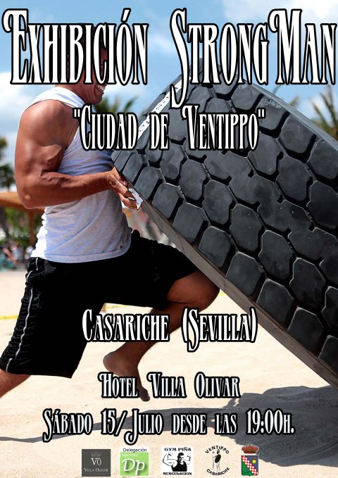 Y para ir entrando en materia, el sábado 15 de Julio, a partir de las 19:00 horas, también en el Hotel Villa Olivar, tenemos la Exhibición StrongMan “Ciudad de Ventippo”, una prueba deportiva de dureza extrema que cuenta con participantes de altísimo nivel.