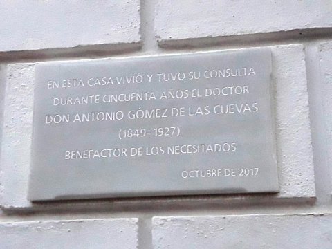 A iniciativa de familiares y vecinos del Doctor Antonio Gómez de las Cuevas, en colaboración con el Ayuntamiento de Casariche, desde este fin de semana, su antigua casa luce una placa conmemorativa, donde reza el siguiente texto «En esta casa vivió y tuvo su consulta durante cincuenta años el Doctor D. Antonio Gómexz de las Cuevas (1849-1927), benefactor de los necesitados. Casariche, Octubre 2017». El acto, que reunió a sus familiares, resultó muy emotivo y contó asimismo con la presencia de nuestro Alcalde, Basilio Carrión.