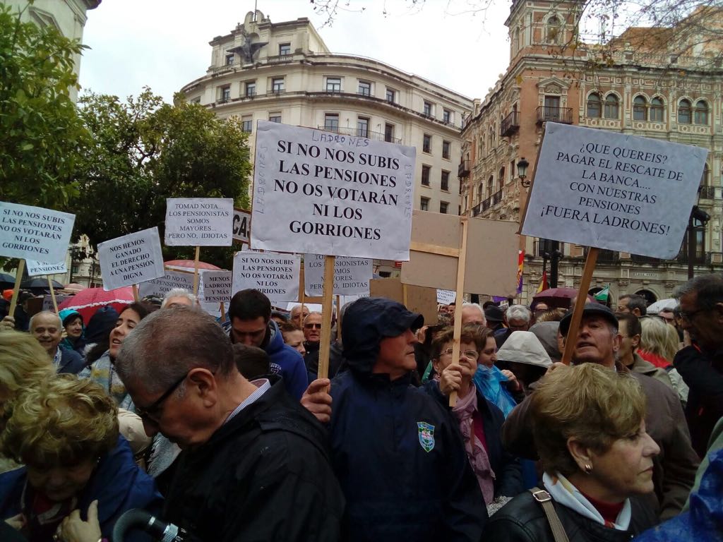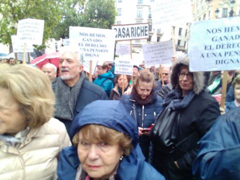 A pesar de la intensa lluvia, miles de pensionistas colapsaron el Centro de Sevilla el sábado 17 de Marzo para reivindicar un sistema público de pensiones «viable y digno». Una manifestación, a la que se sumaron muchísim@s casaricheñ@s (desde aquí salieron tres autobuses, con representación de todas las edades: familias, jóvenes y personas mayores).