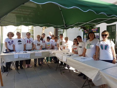 La Asociación Crisol-Aydis celebró el jueves día 31 de Mayo, de de 18:00 a 20:00 horas, un Mercadillo Solidario en la Plaza del Ayuntamiento. Allí puso a la venta las camisetas que han elaborado sus socios “con mimo y con amor» en su Taller Ocupacional “Capaces de pensar, capaces de crear”.