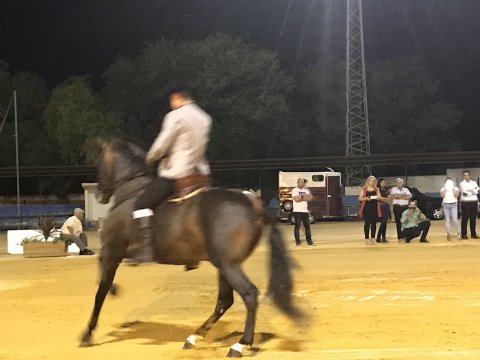 La sexta exhibición ecuestre «Villa de Casariche», celebrada el sábado 14 de Julio a partir de las diez de la noche, reunió en nuestro Campo de Fútbol de Albero a caballistas de primer nivel que nos dejaron boquiabiertos con el arte, belleza y estilo mostrados, gracias a la perfecta simbiosis entre jinetes y equinos, durante los pases de las distintas disciplinas de doma: Gonzalo Pérez, en Alta Escuela, Álvaro Romero, en Doma Clásica, y Joaquín Aguilera, en Doma Vaquera.