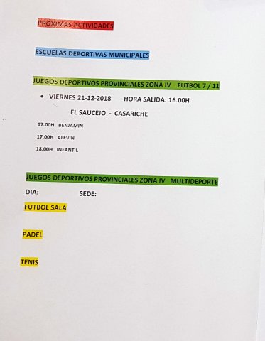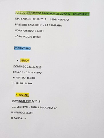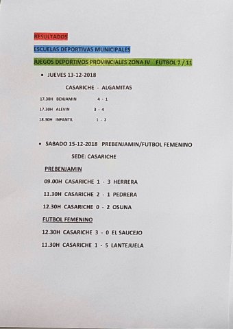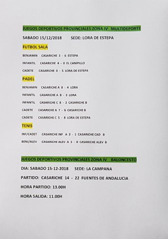 Os facilitamos las próximas actividades deportivas con participación casaricheña, así como los resultados de la semana pasada.