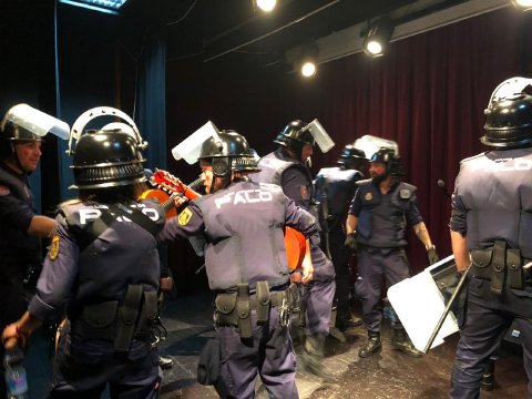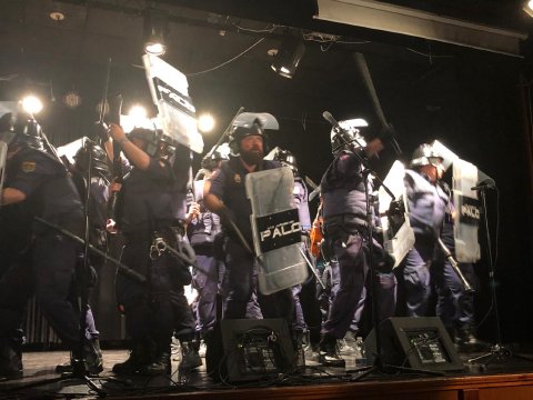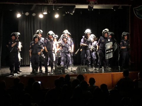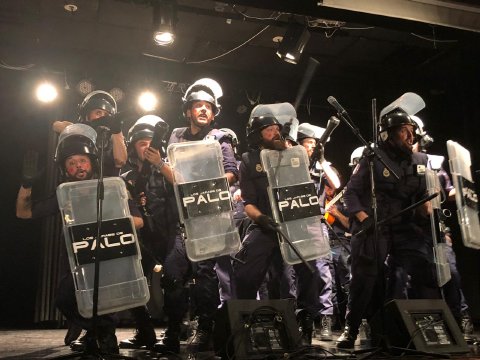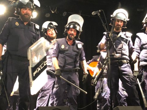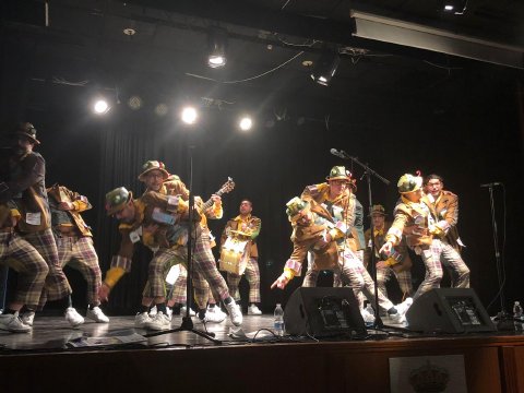 Tanto la chirigota de Antonio Álvarez, el Bizcocho, con su peculiar grupo de antidisturbios, como la Chrigota de Los Molina, y su grupo de morosos que le deben a todo el mundo, dieron lo mejor de sí ofreciendo a un público totalmente entregado lo mejor de la guasa carnavalera a través de sus coplas y pasadobles.