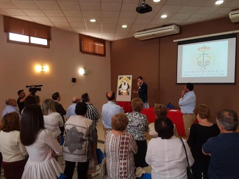 Por su parte, en la segunda ponencia, de carácter cultural, se dio a conocer la obra artística conmemorativa del 25 Aniversario de la Santísima Virgen de la Esperanza. Fue su autor, Antonio Jesús García López, que fue presentado por María del Carmen Bastos Carnerero, quien detalló las características de la misma, destacando, entre otras, el hecho de que la corona que porta la Virgen no es la de la Esperanza, sino la de la Encarnación, como referencia a que la Encarnación fue su madrina durante su bendición.