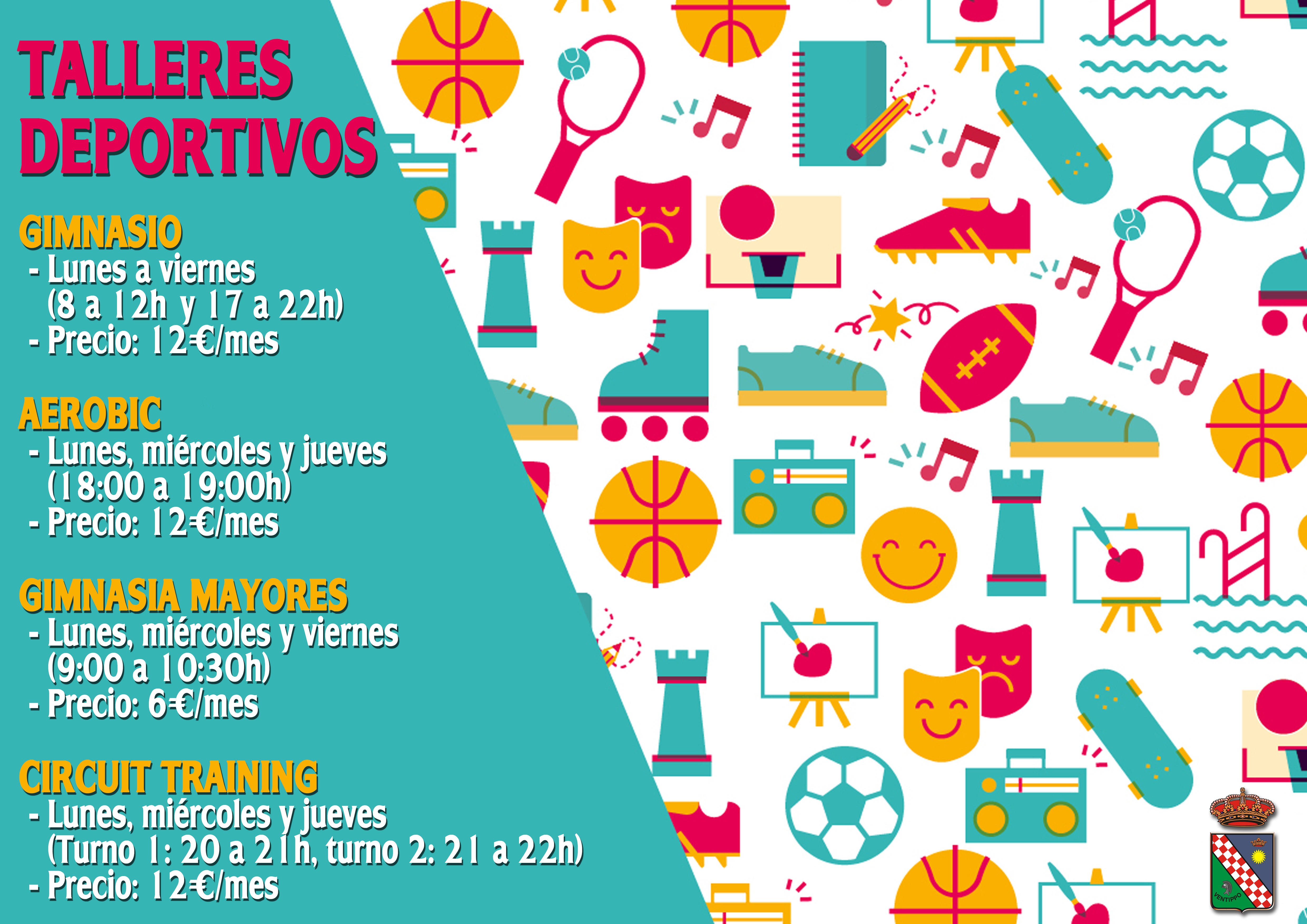Se abre el plazo de inscripción para los nuevos talleres ofertados por la Concejalía de Deportes. Se tratan de los talleres de «Gimnasia para mayores», «aerobic», «circuit training» y «gimnasio», que darán comienzo durante el mes de Septiembre.