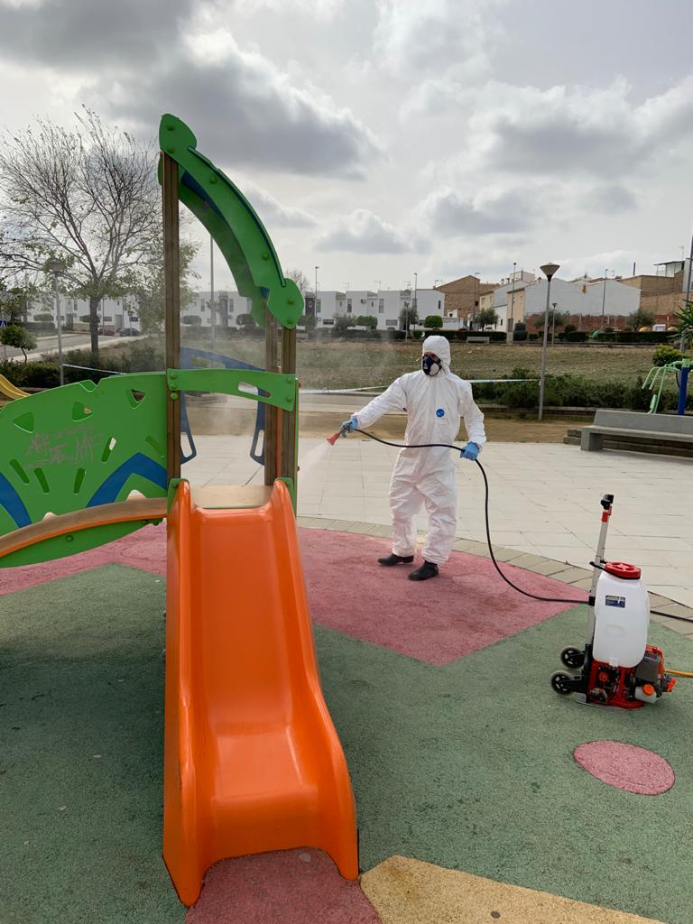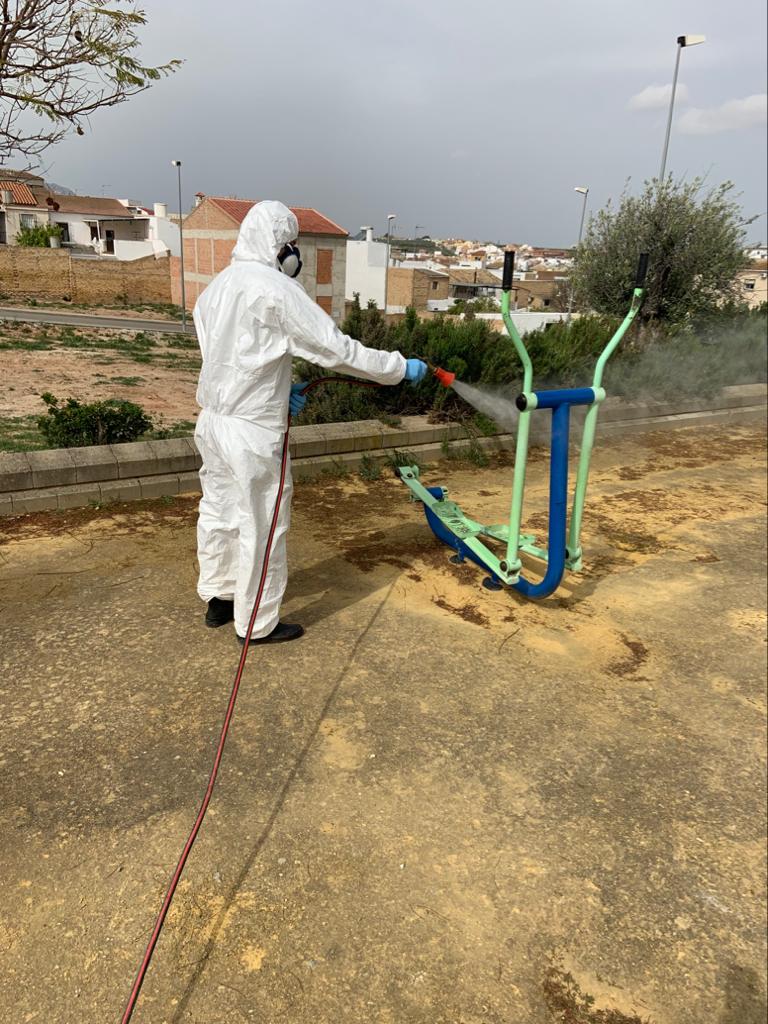 Las labores de limpieza y desinfección que comenzaron ayer, jueves 19, han continuado durante todo el día de hoy. Ya se ha completado la desinfección del casco urbano, a falta de las zonas más alejadas (Rigüelo, Viña Diego, los Viñazos, Ribera Baja…) cuya limpieza se ejecutará entre el lunes y el martes de la próxima semana, según la climatología.