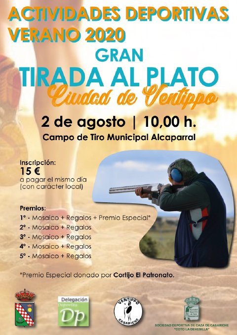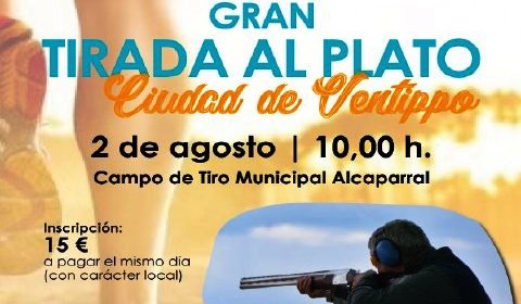 Los amantes del tiro al plato de nuestra localidad tienen una cita ineludible el domingo 2 de Agosto. Ese día, a partir de las 10:00 h, se celebra en el Campo de Tiro Municipal Alcaparral la Gran Tirada al Plato «Ciudad de Ventippo».