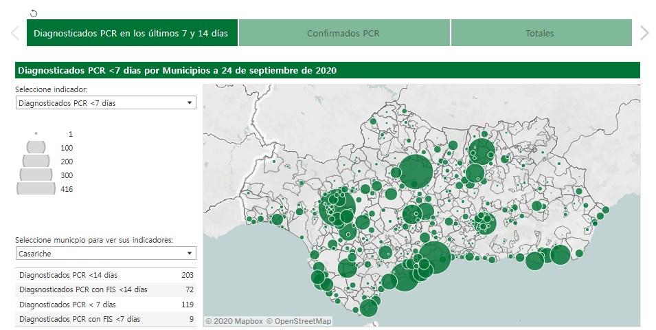 La tasa de contagio por cada 100.000 habitantes sigue siendo 25 veces superior a la media de la provincia de Sevilla, situándose en 3.720’7 casos positivos por cada 100.000 habitantes.