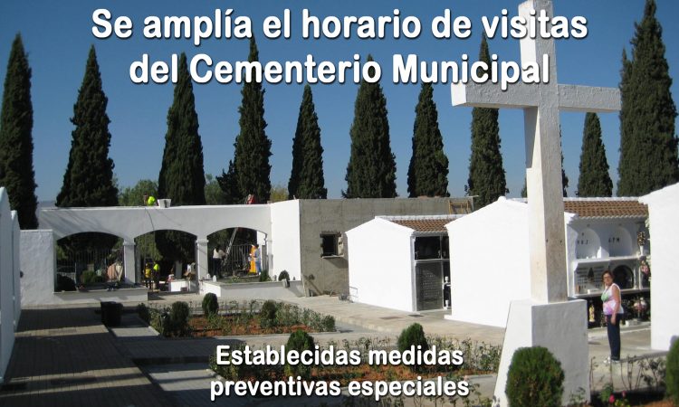 El Excmo. Ayuntamiento de Casariche amplía el horario de apertura al Cementerio Municipal en previsión a las múltiples visitas que realizarán las familias casaricheñas en los próximos días, con motivo de la celebración de la festividad del Día de los Difuntos (el día 2 de noviembre) la cual está precedida de la Festividad de Todos los Santos (día no laboral) el día 1 de noviembre.