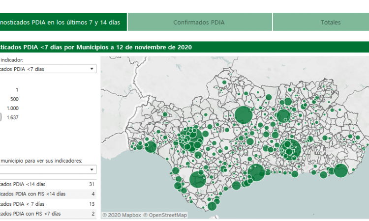 Tanto los «casos activos positivos» de los últimos 7 días como la tasa de contagio por cada 100.000 habitantes han descendido con respecto a los valores de ayer. La tasa de contagio se sitúa en los 568’2 casos (nuevamente por debajo de la media de la provincia de Sevilla) y los «casos activos positivos» de los últimos 7 días en 13 casos.