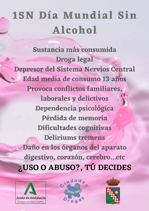 Este domingo 15 de Noviembre se conmemora el Día Mundial Sin alcohol y desde la Delegación de Bienestar Social, a través de Casariche ante las Drogas, queremos hacer hincapié en la importancia de un consumo responsable, así como recordar las consecuencias negativas del alcohol sobre nuestra salud, teniendo en cuenta la convivencia y presencia del alcohol en nuestras vidas.