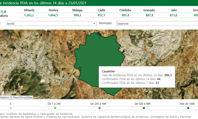Desafortunadamente nuestro municipio sigue sumando nuevos casos positivos por COVID19, ya que según los últimos datos oficiales publicados por el Instituto de Estadística y Cartografía de Andalucía y por la Consejería de Salud y Familia, Casariche ha registrado 11 nuevos casos positivos durante el último fin semana (desde el viernes día 22).
