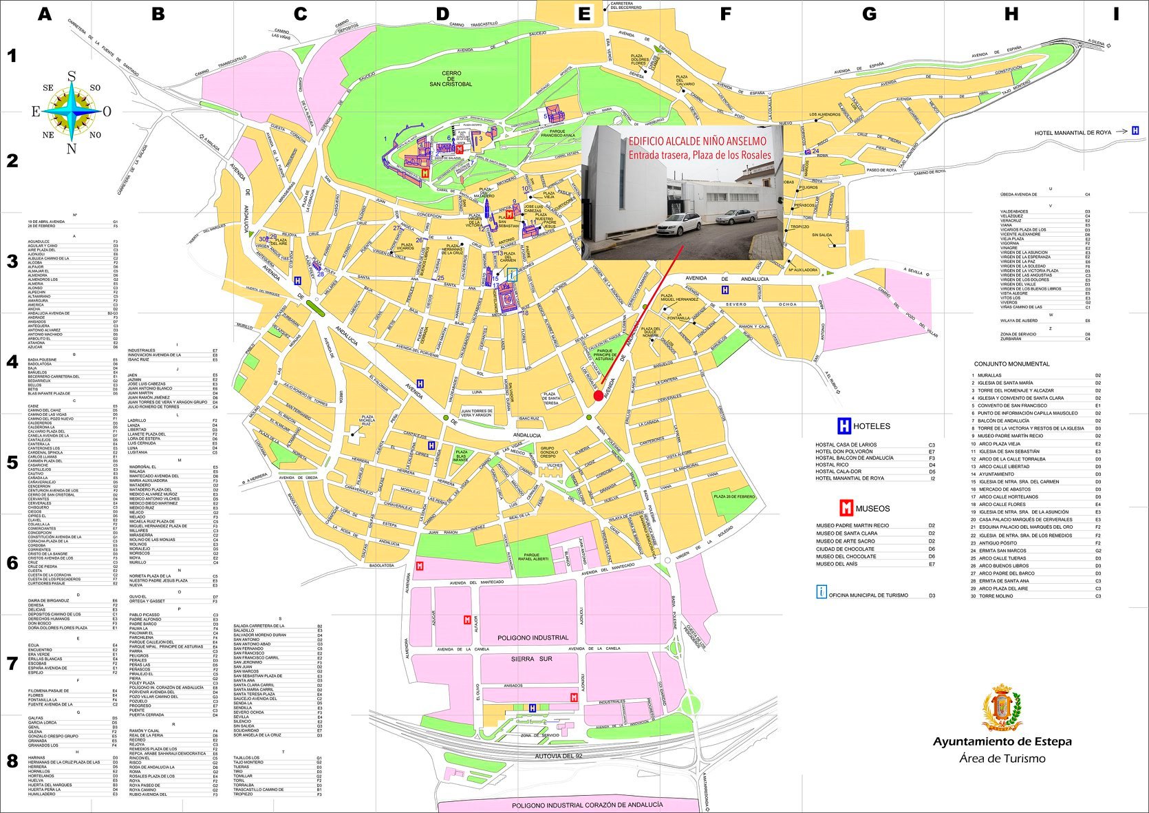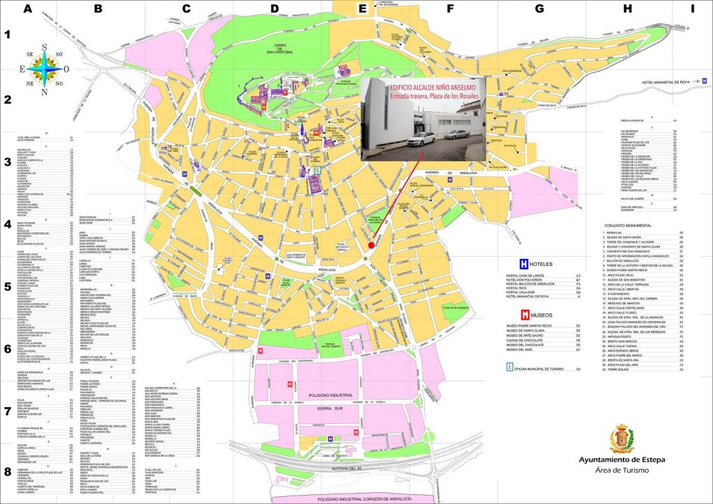Desde el Ayuntamiento de Estepa informan que la entrada a la zona de vacunación se hará por la puerta trasera del edificio, es decir, por la plaza de Los Rosales que da al parque Príncipe de Asturias: