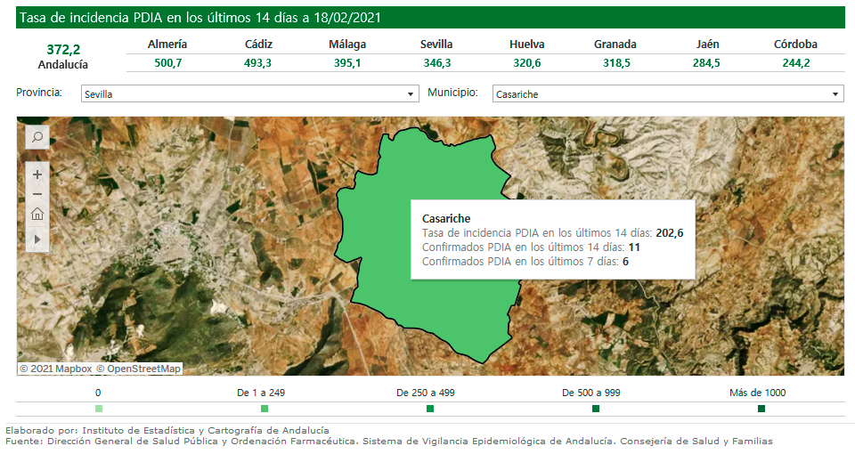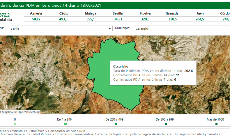 Dos nuevos casos positivos por COVID19 ha sumado Casariche en las últimas 24 horas, según los datos oficiales de la evolución de la pandemia publicados por el Instituto de Estadística y Cartografía de Andalucía y por la Consejería de Salud y Familias.