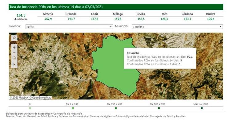 Una vez consultados los datos oficiales publicados por el Instituto de Estadística y Cartografía de Andalucía y por la Consejería de Salud y Familias en relación a la pandemia del COVID19, tras el puente del Día de Andalucía, seguimos con datos muy favorables, ya que continuamos sin haber registrado nuevos casos positivos en Casariche.