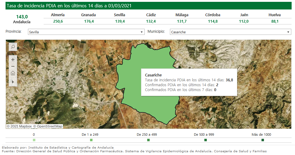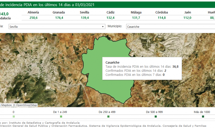 Buenas noticias se desprenden de la última actualización de datos oficiales de la evolución de la pandemia derivada de la COVID19 publicados por el Instituto de Estadística y Cartografía de Andalucía y por la Consejería de Salud y Familias, ya que un día más, Casariche continúa sin registrar nuevos positivos.
