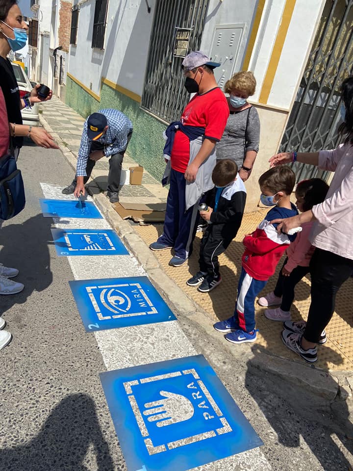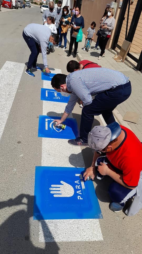 Ayer lunes 5 de Abril se inició “la colocación de una secuencia de pictogramas, ordenados de una forma lógica, con un tamaño y color adecuado, sobre los pasos de peatones de nuestro pueblo, con el fin de poder ayudar a las personas con Trastorno del Espectro Autista (TEA) a poder cruzarlos de una forma adecuada y segura”.