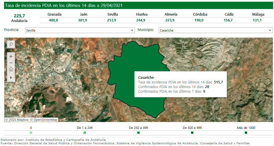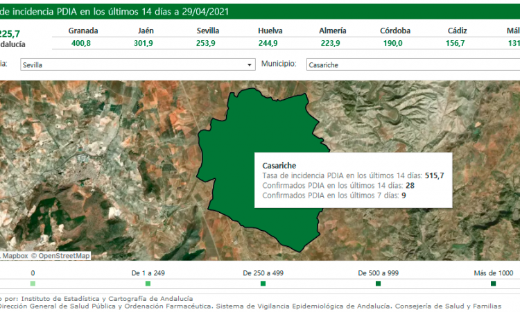 En las últimas 24 horas se han registrado 4 nuevos casos positivos por COVID19 en Casariche según los últimos datos oficiales publicados por el Instituto de Estadística y Cartografía y por la Consejería de Salud y Familias.