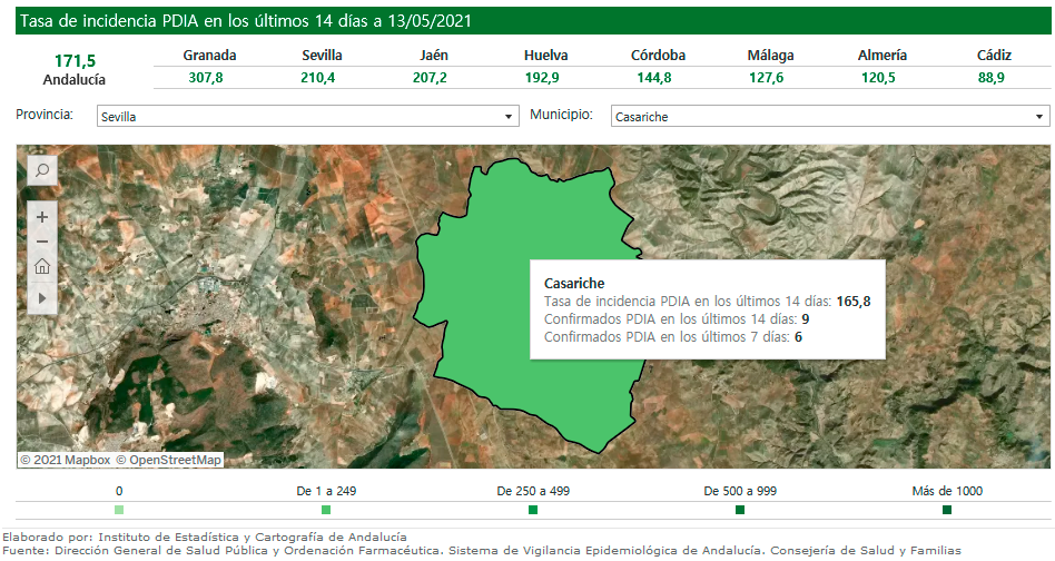 En las últimas 24 horas no se han registrado nuevos casos positivos por COVID19 en Casariche, según los datos oficiales publicados por el Instituto de Estadística y Cartografía de Andalucía y la Consejería de Salud y Familias.