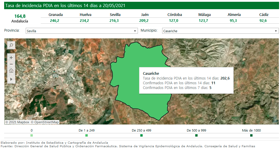 Casariche no ha sumado nuevos casos positivos por COVID19 en las últimas 24 horas, según los datos publicados por el Instituto de Estadística y Cartografía de Andalucía y por la Consejería de Salud y Familias.