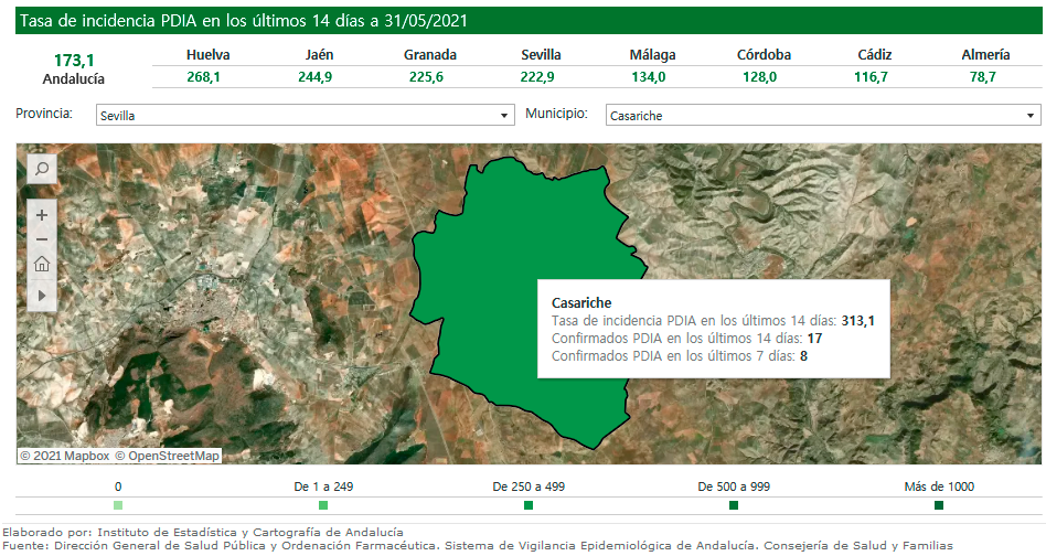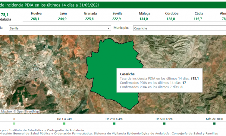 Según la última actualización de datos oficiales por parte del Instituto de Estadística y Cartografía de Andalucía y por la Consejería de Salud y Familias, durante el fin de semana (desde el pasado viernes día 28 de mayo) no se han registrado nuevos casos positivos por COVID19 en nuestra localidad.