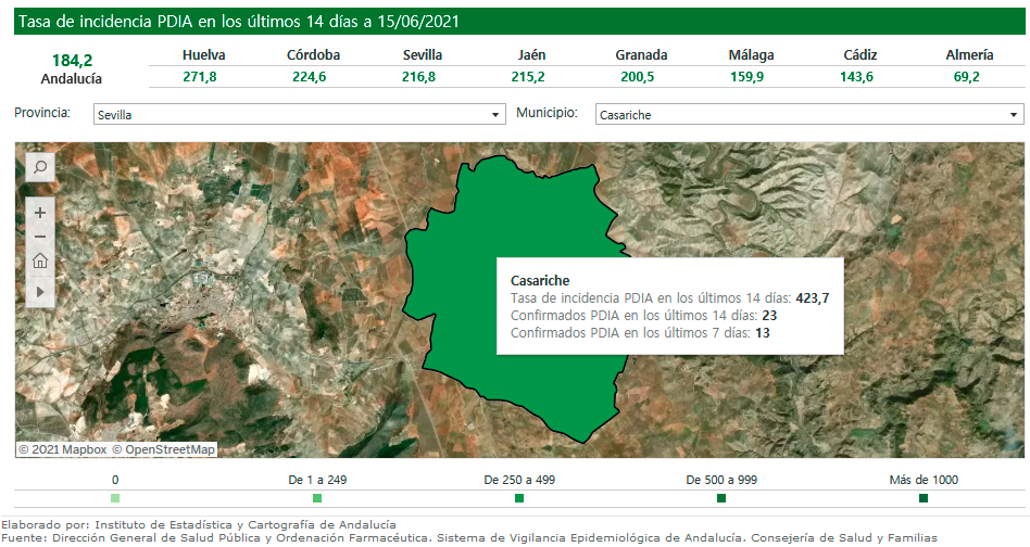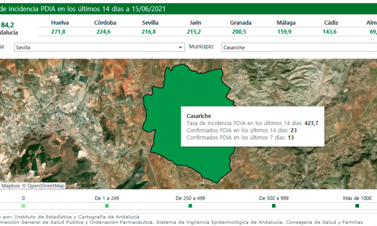 En las últimas 24 horas, se ha registrado tres nuevos contagios por COVID19 según los datos oficiales publicados por el Instituto de Estadística y Cartografía de Andalucía y por la Consejería de Salud y Familias.