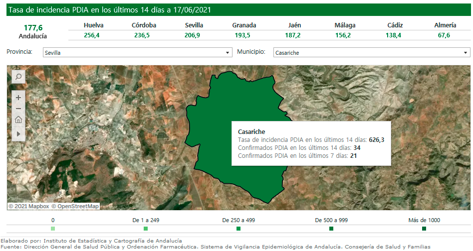 La última actualización de los datos oficiales de la pandemia publicados por el Instituto de Estadística y Cartografía de Andalucía y por la Consejería de Salud y Familias, arrojan unas cifras muy preocupantes para nuestra localidad, ya que se han registrado hasta 13 nuevos contagios por COVID19 en las últimas 24 horas.