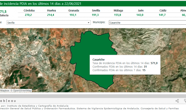 Casariche ha sumado un nuevo contagio por COVID19 en las últimas 24 horas según los datos oficiales publicados por el Instituto de Estadística y Cartografía de Andalucía y por la Consejería de Salud y Familias.