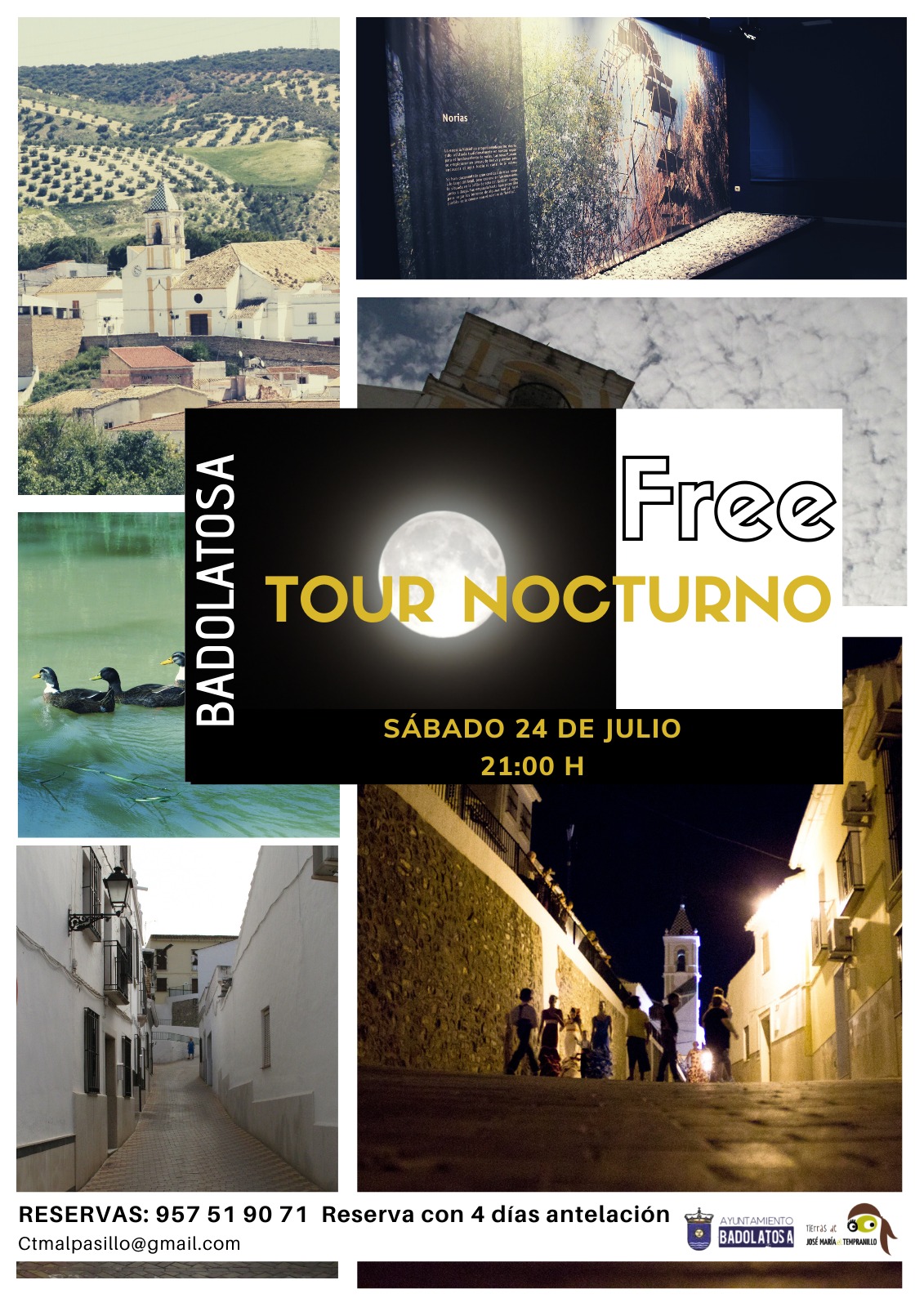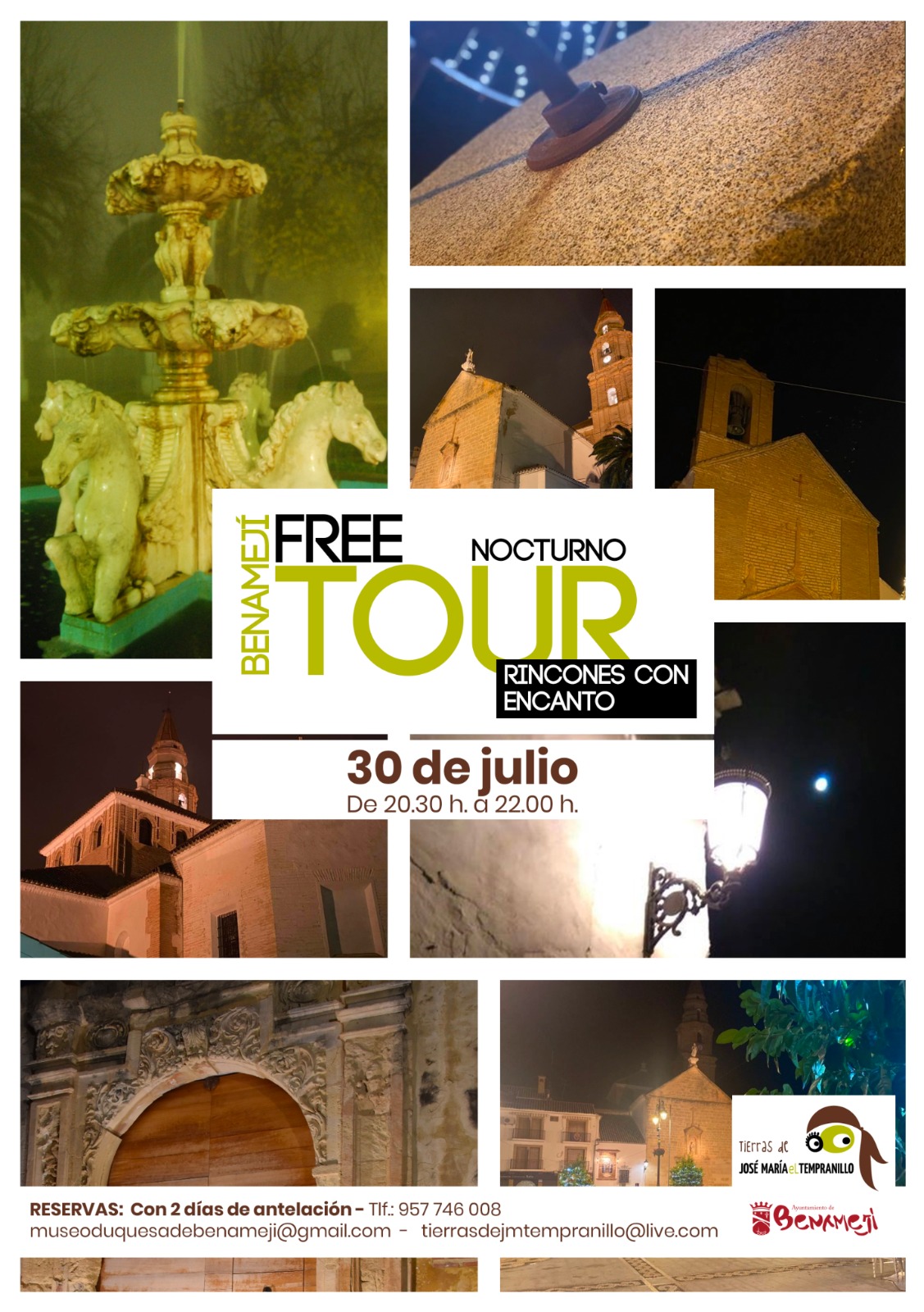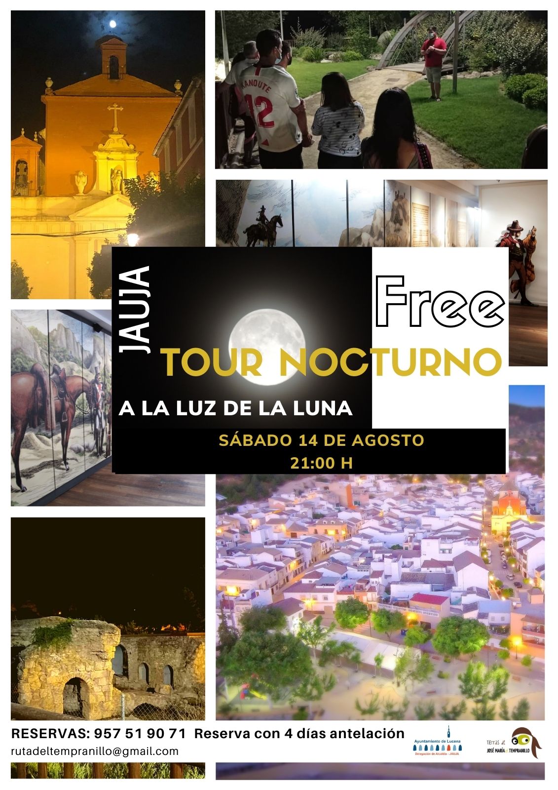 La Fundación para el desarrollo de los pueblos de Tierras de José Mª “El Tempranillo”, en colaboración con los Ayuntamientos de Alameda, Badolatosa-Corcoya, Benamejí, Casariche, Cuevas Bajas y la Delegación de la alcaldía de Lucena en Jauja, ha puesto en marcha una actividad de visita guiada nocturna, y de carácter gratuito, por los rincones más destacados y singulares de los municipios que componen el destino turístico de “Tierras de José María El Tempranillo”. Estas visitas guiadas van enmarcadas dentro del programa de verano cultural 2021 de cada municipio, y están dirigidas a todas aquellas personas interesadas en la riqueza cultural, histórica, patrimonial o paisajística de estos pueblos, con el valor especial añadido de realizarse de noche. El diseño de esta actividad viene determinada por la actual situación provocada por la pandemia y, por ello, habrá que cumplir una serie de requisitos marcados por las autoridades sanitarias en cuanto a medidas de seguridad relacionadas con el uso de la mascarilla, higiene, distancia, etc.