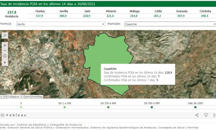 Según el Instituto de Estadística y Cartografía de Andalucía y la Consejería de Salud y Familias, en su último informe oficial, en Casariche se han registrado 3 nuevos contagios por COVID19 durante el fin de semana (desde el viernes día 27).