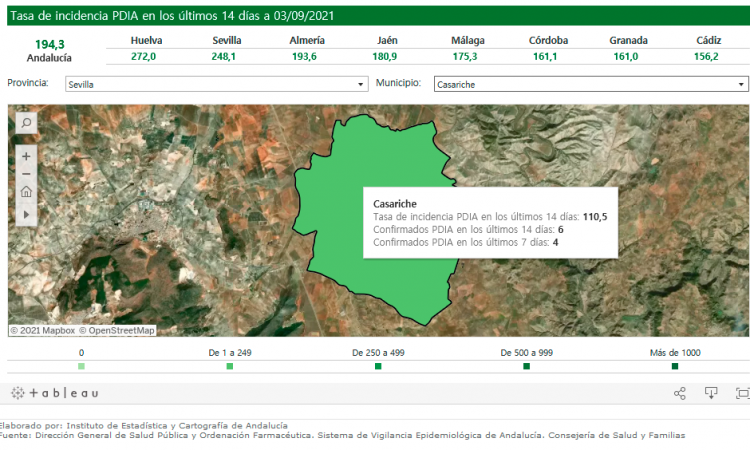 Tras el análisis de los últimos datos oficiales de la evolución de la pandemia derivada de la COVID19 publicados por el Instituto de Estadística y Cartografía de Andalucía y la Consejería de Salud y Familias, no se confirman nuevos casos positivos en Casariche durante las últimas 24 horas.