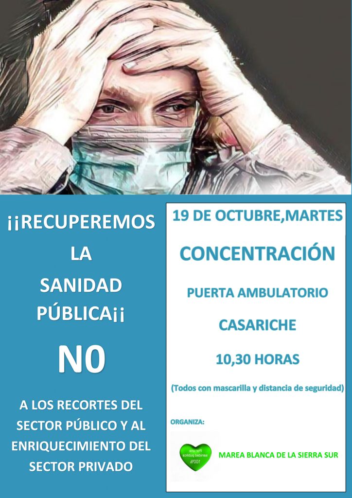 El Excmo. Ayuntamiento de Casariche hace un llamamiento a la población para que participe en la concentración de la «Marea Blanca de la Sierra Sur» que tendrá lugar en la puerta del Consultorio Médico de nuestro pueblo el próximo martes día 19 a las 10:30 horas.