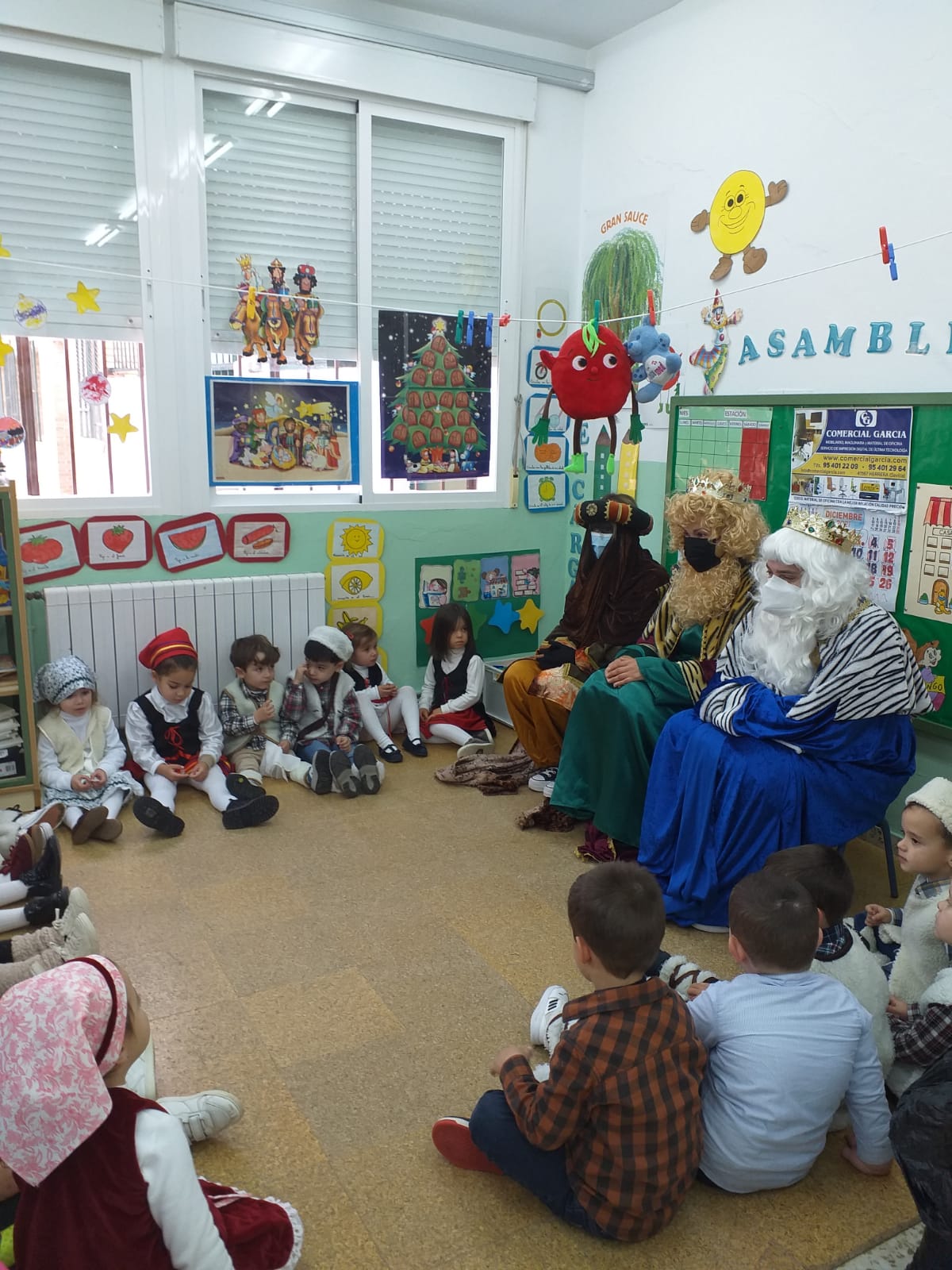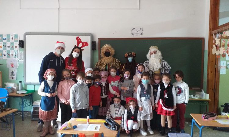 En ambos casos, provistos en todo momento de sus mascarillas antiCovid19, han visitado al alumnado de la guardería y el colegio para recoger sus cartas con sus peticiones para Reyes.