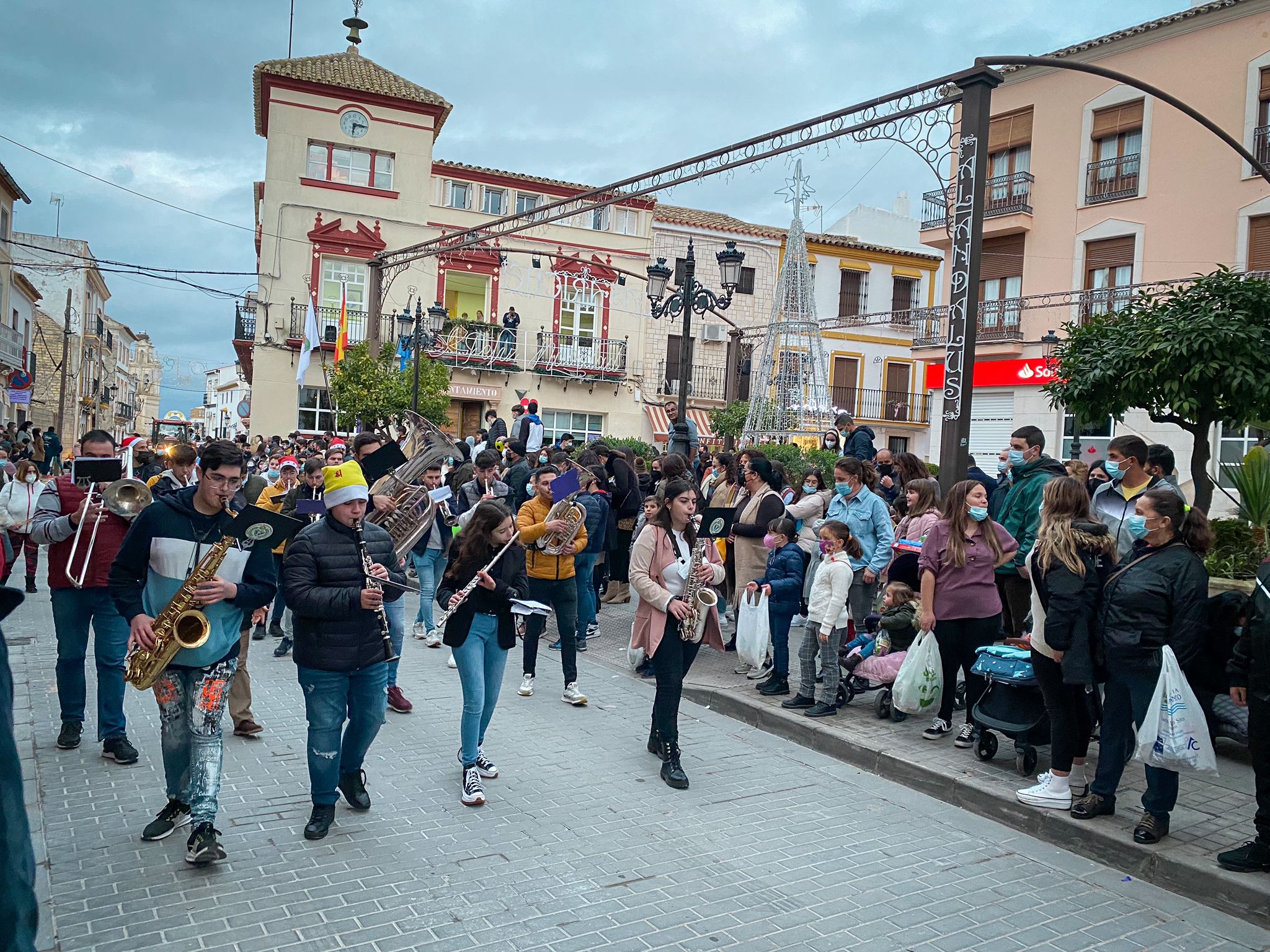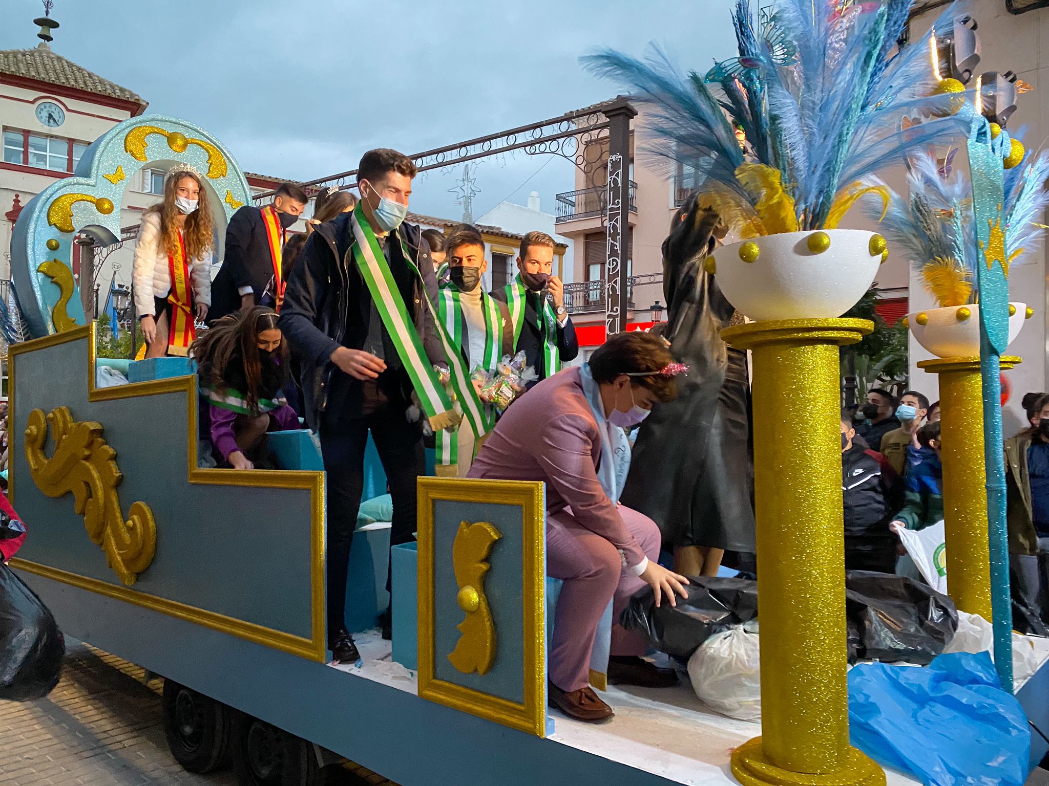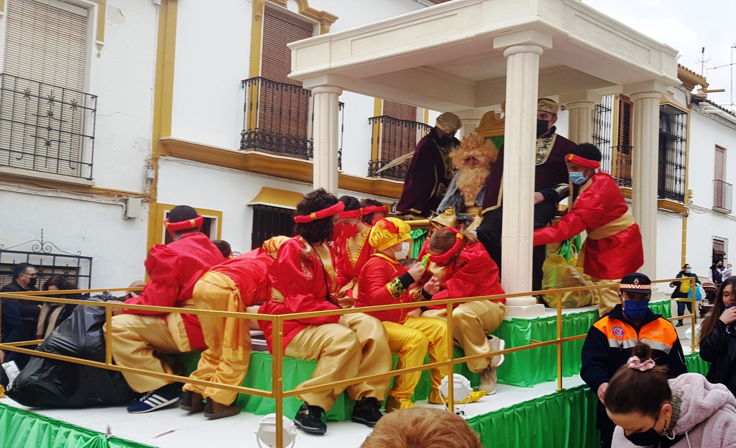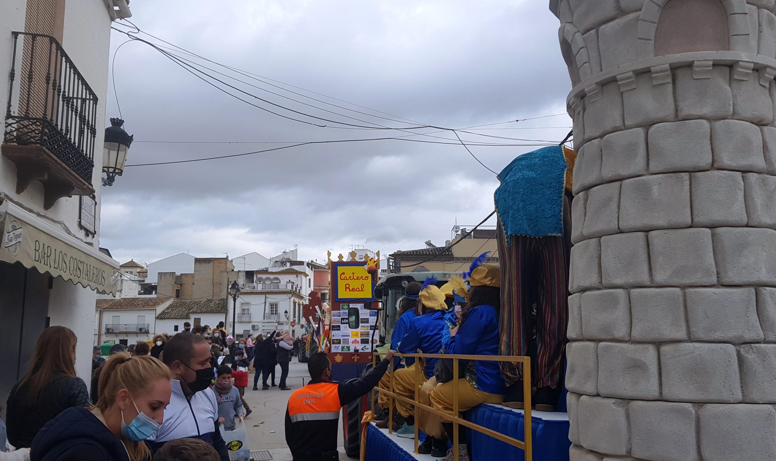 De acuerdo a lo previsto, la comitiva real salió pasadas las cuatro y media de la tarde desde la desde la urbanización frente a la Cooperativa Olivarera y estuvo compuesta por cinco carrozas (la de la Reina de las Fiestas y Damas de Honor, Mister Casariche y Caballeros, y Miss y Mister Simpatía de la Feria 2020 y 2021; la de la Cartera Real y las tres de Sus Majestades, Melchor, Gaspar y Baltasar), precedidas por la Asociación Cultural “Maestro Vitito”, que fue amenizando con su música el paso de la Cabalgata.