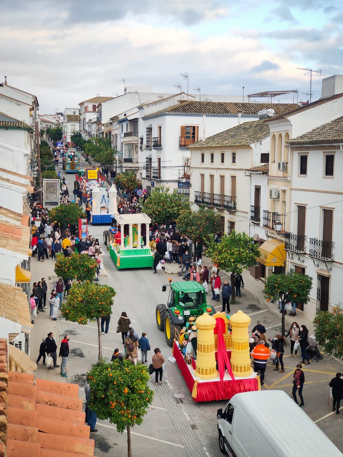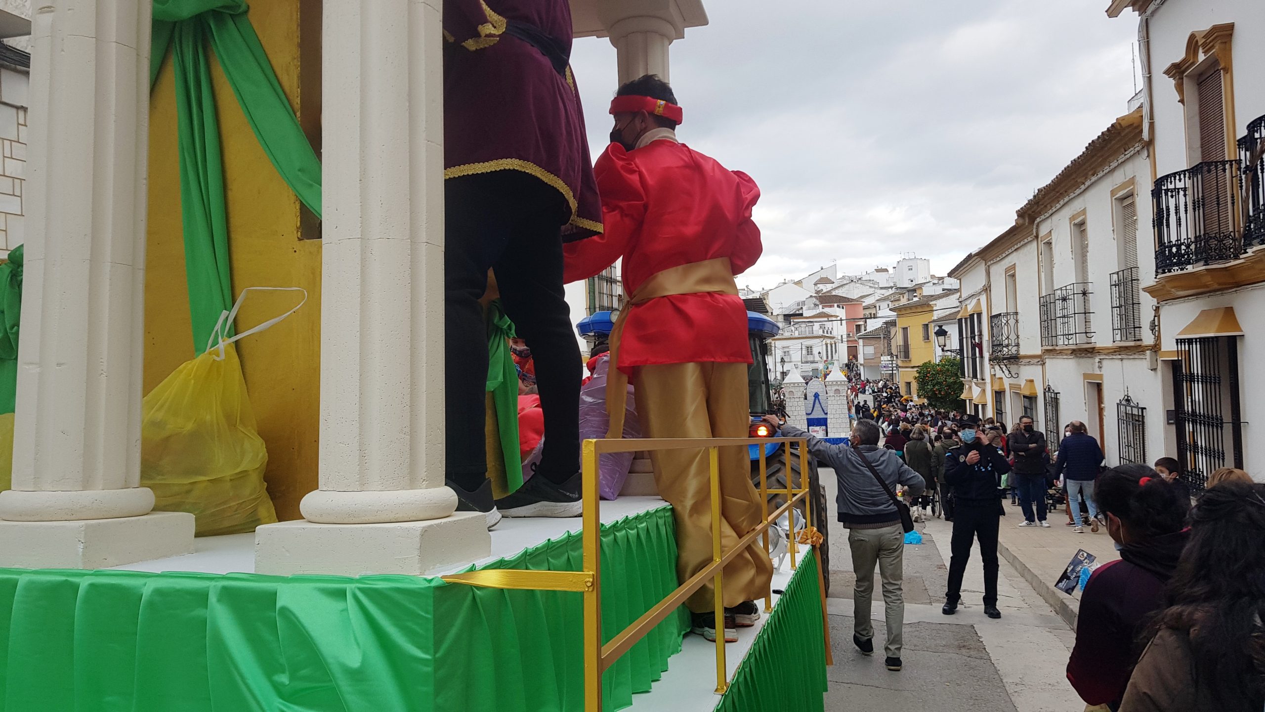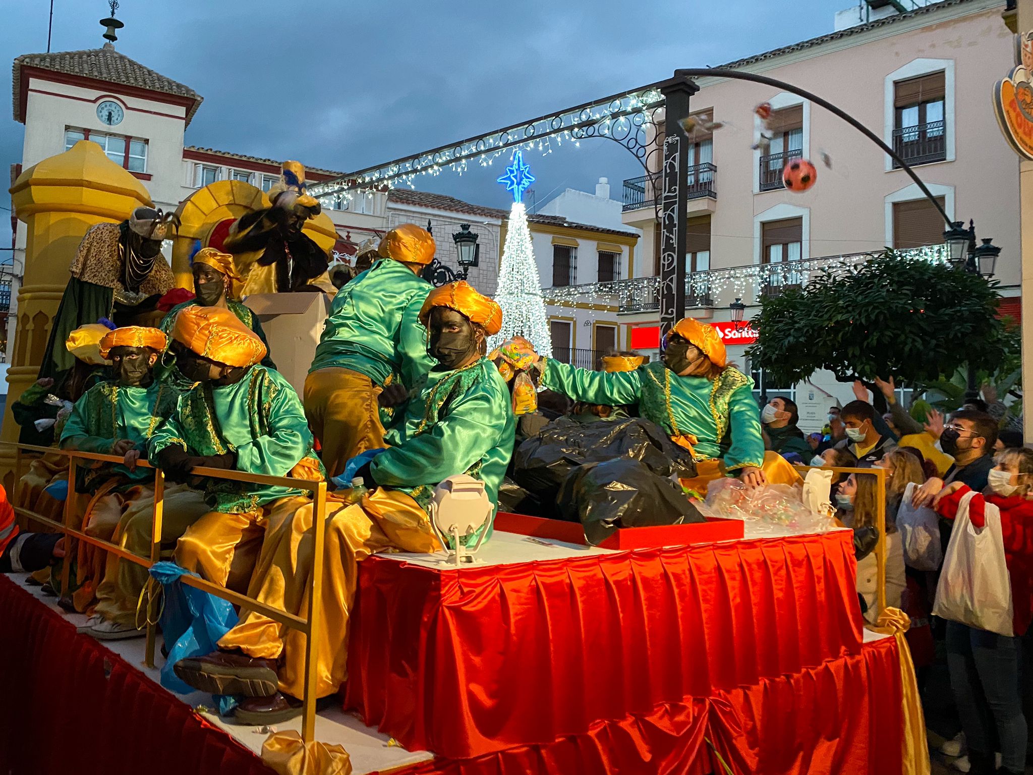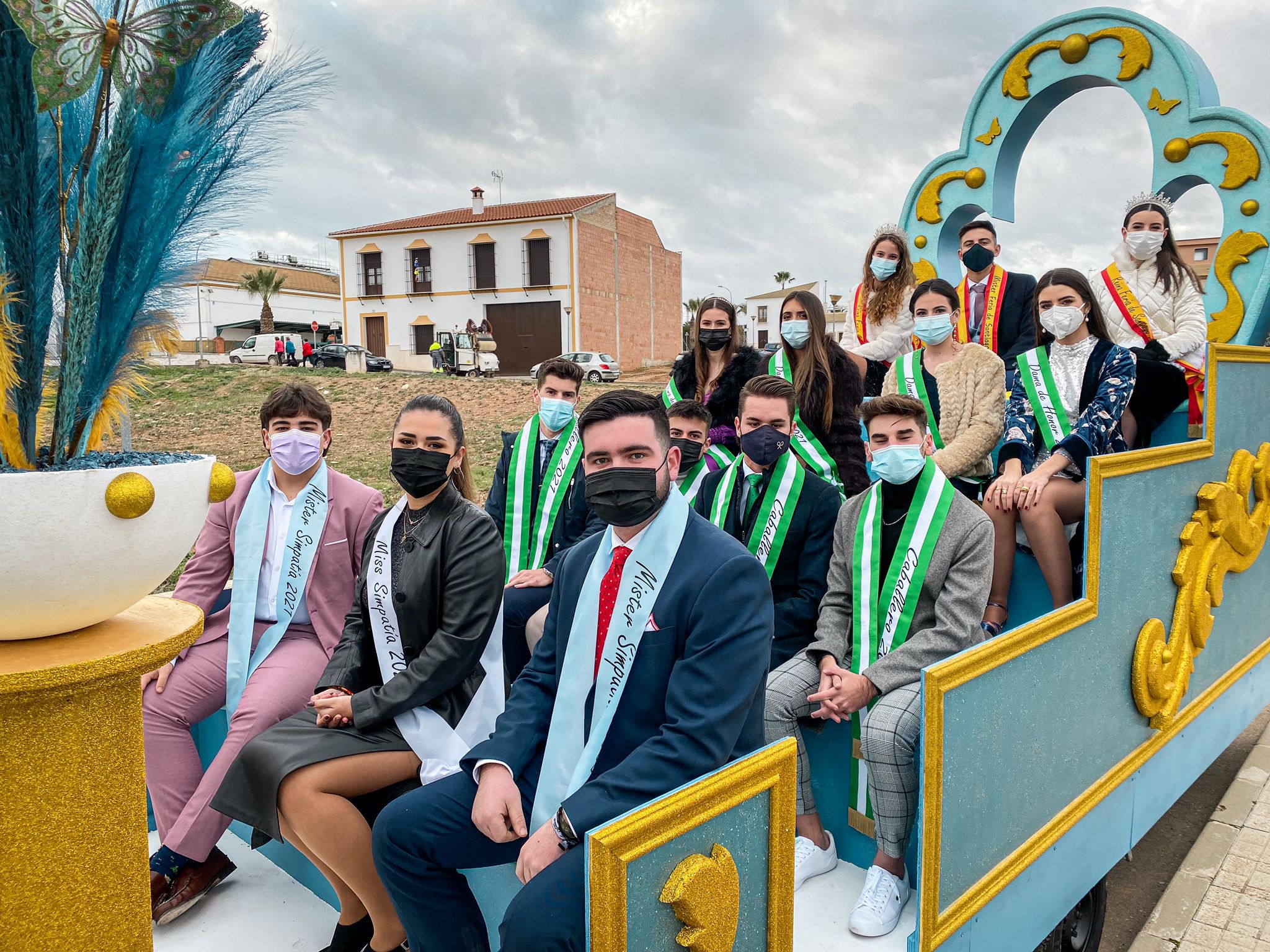 De acuerdo a lo previsto, la comitiva real salió pasadas las cuatro y media de la tarde desde la desde la urbanización frente a la Cooperativa Olivarera y estuvo compuesta por cinco carrozas (la de la Reina de las Fiestas y Damas de Honor, Mister Casariche y Caballeros, y Miss y Mister Simpatía de la Feria 2020 y 2021; la de la Cartera Real y las tres de Sus Majestades, Melchor, Gaspar y Baltasar), precedidas por la Asociación Cultural “Maestro Vitito”, que fue amenizando con su música el paso de la Cabalgata.