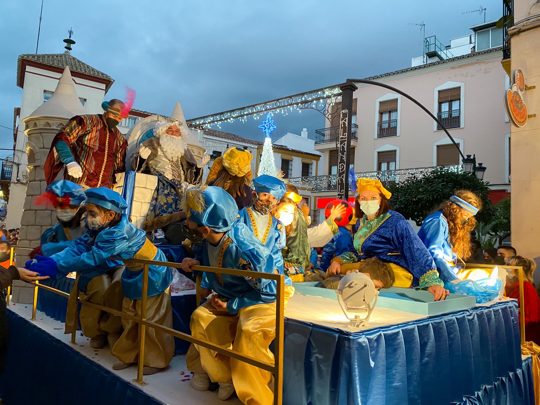 La Cabalgata se llevó a cabo con un recorrido más amplio, mayor distancia entre carrozas, una Comitiva Real más reducida y mascarillas de protección, tanto entre los componentes de la Comitiva como entre el público, con el fin de que tod@s nuestr@s vecin@s pudiesen disfrutar de ella sin aglomeraciones.