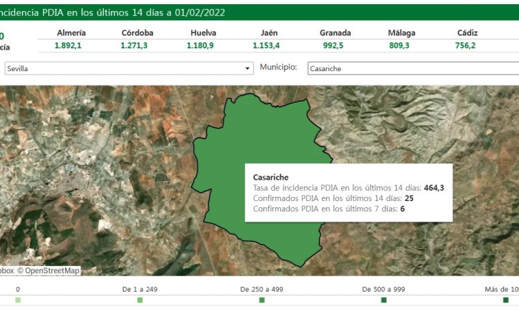 La última actualización de datos del Instituto de Estadística y Cartografía de Andalucía y de la Consejería de Salud y Familias, refleja un nuevo caso positivo por COVID19 en Casariche durante las últimas 24 horas.
