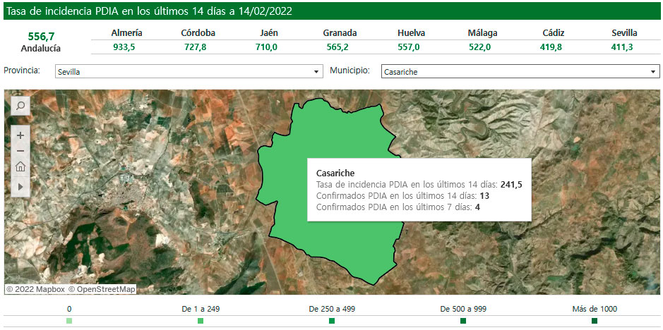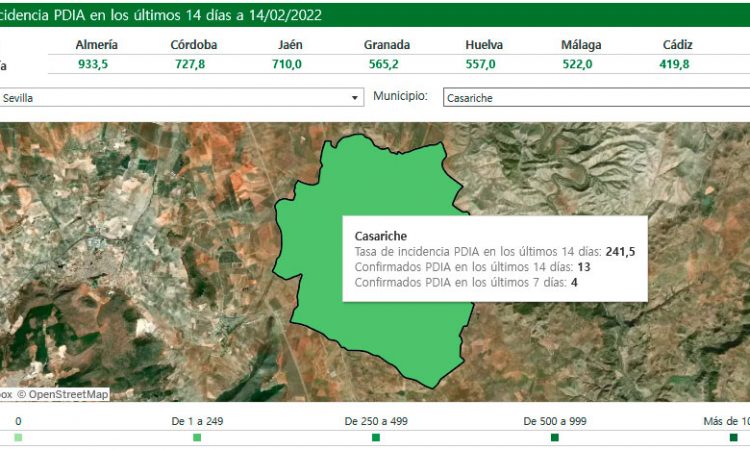 Se mantiene estable la tasa de contagio de Casariche, que permanece en los 241’5 casos por cada 100.000 habitantes, después de haberse registrado un único nuevo positivo por COVID19 durante el fin de semana, según los datos publicados por el Instituto de Estadística y Cartografía de Andalucía y por la Consejería de Salud y Familias.