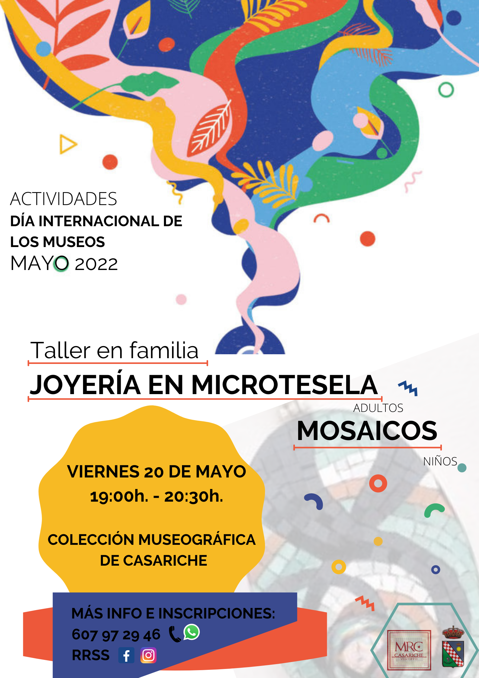 Continuando con la conmemoración del Día Internacional de los Museos, el 20 de mayo, de 19:00 h a 20:30 h, se realizará en nuestra Colección Museográfica del Mosaico Romano un nuevo taller dirigido a familias, ya que, durante el mismo, mientras el adulto participante realiza una pequeña joya en microtesela, el niño trabajará el arte del mosaico.